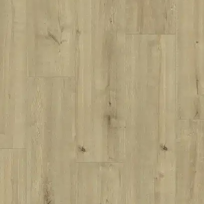 Laminate floors are a hybrid floor covering consisting of a particleboard wood base topped by an image layer and a transparent wear layer. Laminate floors are a popular type of floor covering for homes' living areas, kitchens, dining areas, bedrooms, hallways, and other areas that are not subject to excessive moisture.